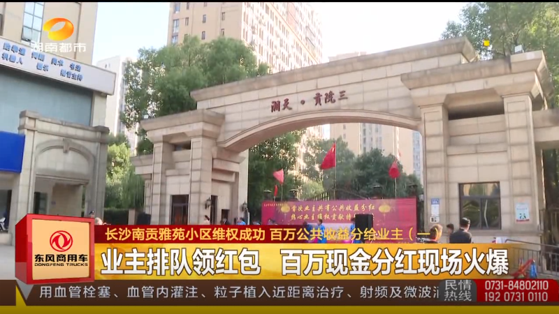 2025年11月5日,雨花区南贡雅苑小区前坪排起长队,业主们脸上笑容洋溢,领取了小区首次公共收益分红。湖南都市频道将这一成功案例如实播报,陈黎律师与业主们多年的努力,终于结出了丰硕成果!